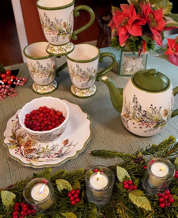 Наслаждайтесь любимыми горячими напитками этой зимой с кружками «Зимний лес». Каждая кружка украшена замысловатыми изображениями сосновых шишек, хвойных веток и праздничных ягод, передающими безмятежную красоту зимнего леса. Эти кружки, разработанные Сьюзан Уингет для Certified International, добавят стиль и теплоты в вашу повседневную жизнь. Изготовленные из керамики, они сочетают в себе прочность и элегантность, идеально подходя как для повседневного использования, так и для особых случаев. Наслаждайтесь кофе, чаем или горячим шоколадом в праздничной атмосфере и окунитесь в очарование зимнего сезона.