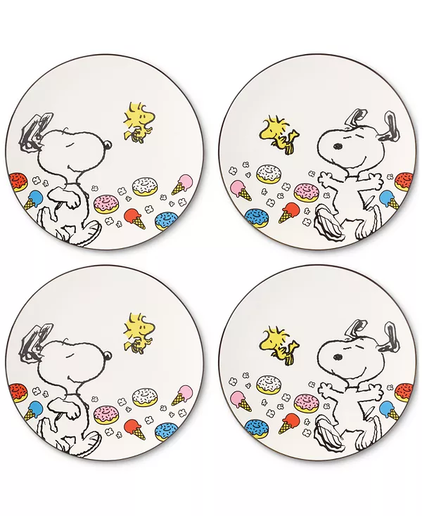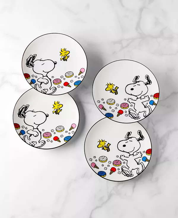 Этот набор из четырех декоративных тарелок от Lenox с иллюстрациями Снупи и Вудстока поможет сделать времяпрепровождение с друзьями и семьей более красочным, веселым и интересным.