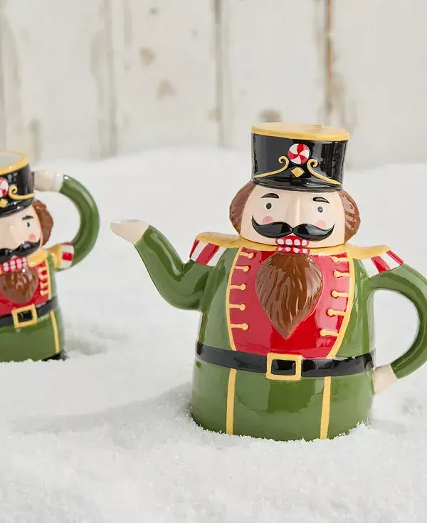 Наполните свои праздничные дни радостью с помощью заварочного чайника «Щелкунчик» 3D «Щелкунчик» из серии «Щелкунчик» – причудливого чайника, идеально подходящего для чая, глинтвейна или горячего шоколада. Этот праздничный предмет, выполненный в форме традиционного рождественского щелкунчика, мгновенно добавит очарования вашему рождественскому столу. Его смелый, детально проработанный дизайн, яркие праздничные цвета, изысканные детали униформы и мятный колпак делают его одновременно функциональным и декоративным. Устраиваете ли вы рождественский бранч или наслаждаетесь уютным зимним вечером у камина, этот чайник наполнит теплом и ностальгией каждый глоток. Идеально подходит для праздничного развлечения или подарка, прекрасно сочетается с полной коллекцией «Парад Щелкунчика», создавая гармоничный сезонный стол.