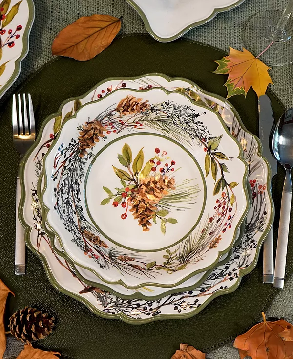 Элегантный дизайн: каждая миска украшена очаровательной тематикой зимнего леса с замысловатыми шишками, вечнозелёными ветками и ягодами. Детализированный рисунок добавит нотку природной элегантности любой сервировке стола.