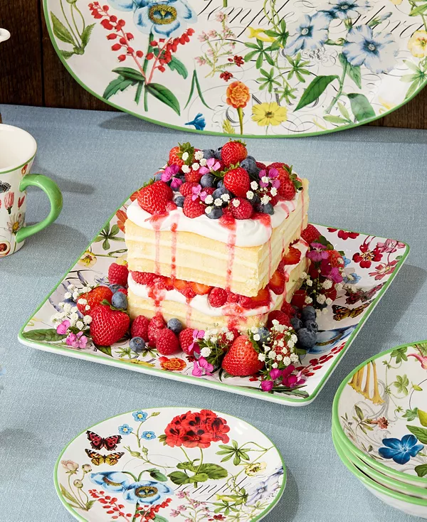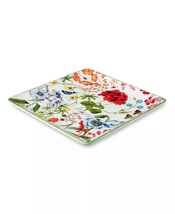 Добавьте элегантности и универсальности в свою коллекцию столовых приборов с помощью квадратного блюда Greenhouse. Это сервировочное блюдо украшено ярким цветочным узором, дополненным нежными бабочками и стрекозами, что делает его идеальным центральным элементом любого стола. Его просторная конструкция обеспечивает достаточно места для подачи закусок, основных блюд, десертов или закусок, делая его незаменимым дополнением к вашей кухне. Это красочное блюдо, созданное с акцентом на красоту и функциональность, идеально подходит как для повседневного использования, так и для особых случаев.