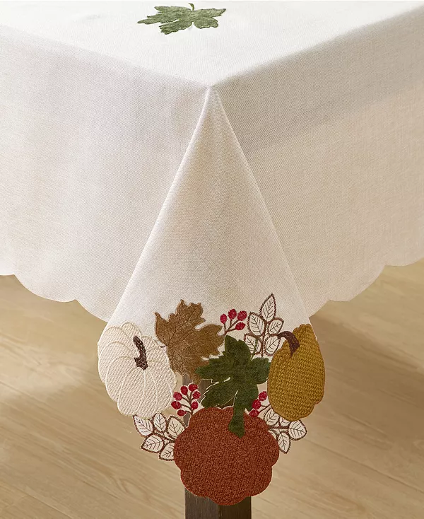 Богато вышитые тыквы подчеркивают фестончатые края, придавая праздничное настроение этой тканевой скатерти от Elrene. Она мягкая и не мнется, что обеспечивает лёгкий уход.