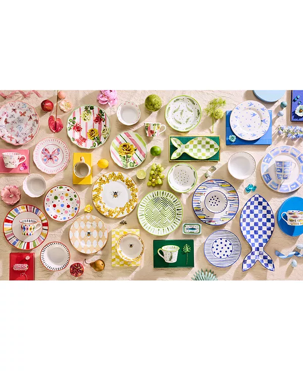 Привнесите все веселье Дня на ярмарке к своему столу с этой обеденной тарелкой Mackenzie-Childs, ярким керамическим изделием, которое мгновенно добавит радости любому столу.