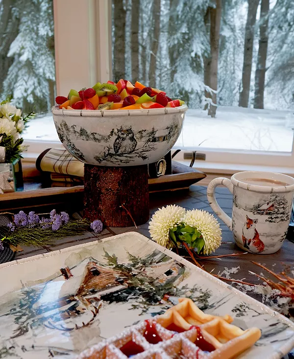 Универсальная столовая посуда: миска, разработанная для комбинирования и сочетания, дополняет другие предметы из коллекции Winter's Frost, идеально подходящие для создания праздничного и гармоничного обеденного гарнитура.