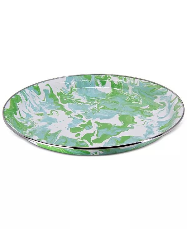Динамичные цветовые завитки придают яркий мраморный вид этому большому подносу из коллекции Modern Monet от Golden Rabbit. Идеально подходит для подачи сэндвичей, ребрышек барбекю, гамбургеров и хот-догов. Поднос вручную покрыт фарфоровой эмалью, что позволяет создавать уникальные вариации цвета и узора. Отделка из нержавеющей стали добавляет элегантный штрих.
