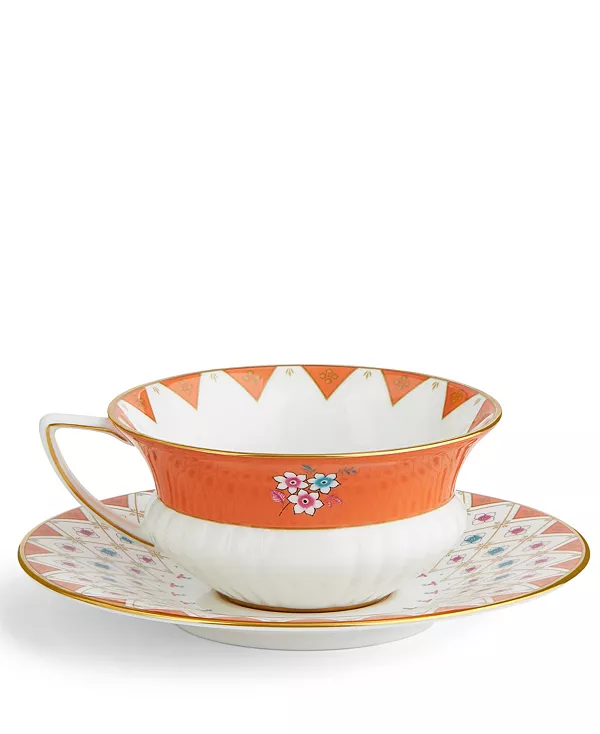 Элементы исламского искусства сочетаются с элегантными английскими садовыми цветами в изящной форме чайной чашки с блюдцем Wonderlust Peony Diamond от Wedgwood.