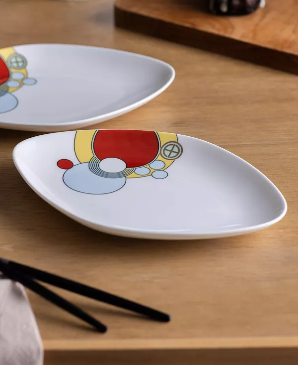 Преобразите свою трапезу с помощью этой тарелки Noritake Frank Lloyd Wright Imperial Cabaret элегантной овальной формы. Она украшена современным рисунком из перекрывающихся кругов и поставляется в подарочной упаковке, которая станет прекрасным подарком или украшением вашего стола.