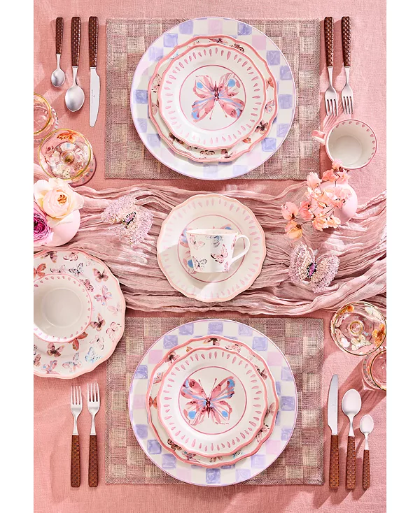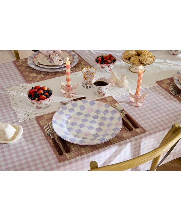 Эта керамическая тарелка от Mackenzie-Childs украшена очаровательными розовыми бабочками в живописных тонах. Изделие ручной работы добавит вашему столу лёгкой игривости.