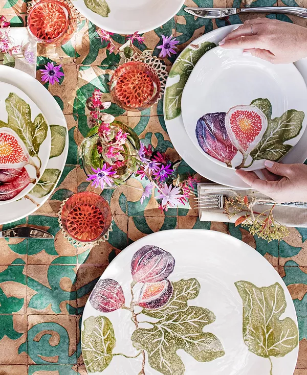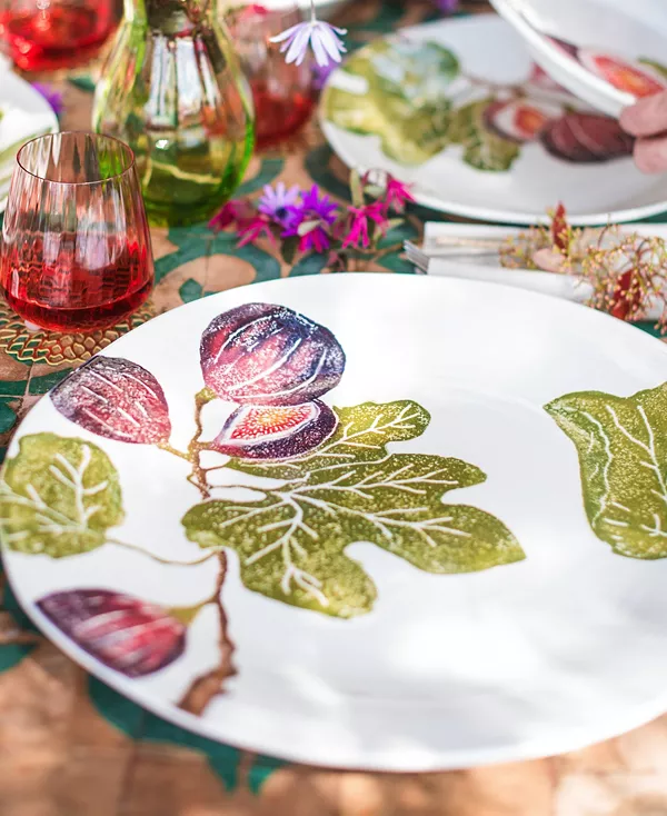 Круглое блюдо Fico с изображением инжира, выполненное в теплых, землистых тонах, символизирует изобилие и связь с землей. Его деревенская элегантность привнесет нотку итальянского наследия на ваш стол и идеально подойдет как для повседневной трапезы, так и для особых случаев.