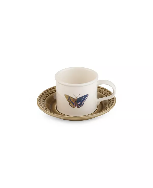 Чашка для завтрака Papilio Harmony Botanic Garden с блюдцем украшена архивной бабочкой на белом фоне, а также блюдцем цвета мха с потрясающим рельефным узором. Этот набор создан для ежедневного использования и подходит для использования в посудомоечной машине, микроволновой печи, духовке и морозильной камере.