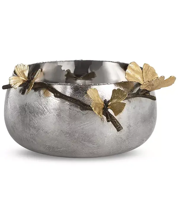 Изысканная сервировочная чаша Michael Aram Butterfly Ginkgo, изготовленная вручную, передает причудливый стиль двухлопастных листьев дерева гинкго.