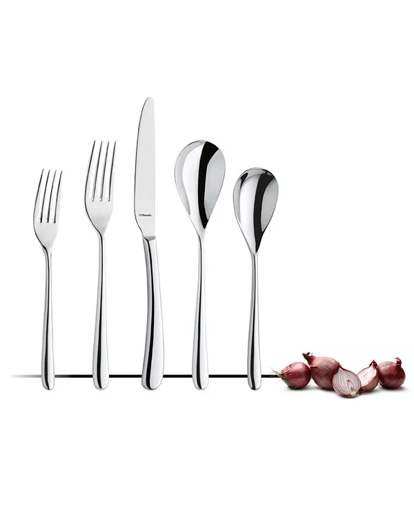 Набор из 5 предметов включает по одному предмету каждого вида: столовый нож, столовую вилку, столовую ложку, чайную ложку и вилку для салата