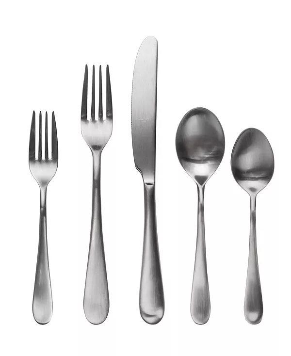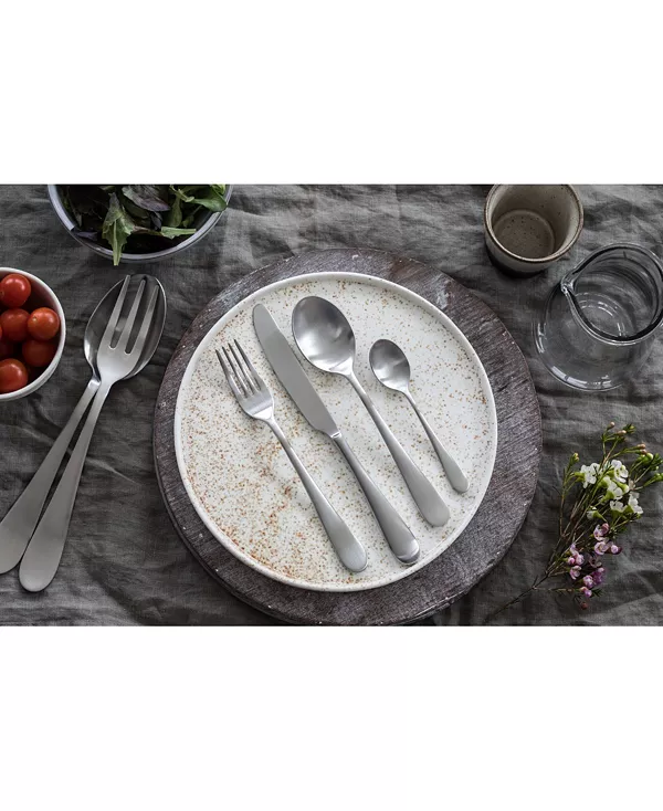 В комплект входит: 1 столовая вилка, 1 столовый нож, 1 десертная ложка, 1 десертная вилка, 1 американская кофейная ложка