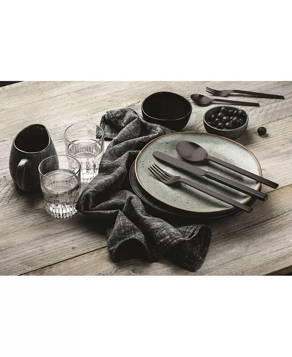 В набор входит по 4 предмета каждого вида: столовая вилка, столовый нож, десертная ложка, десертная вилка, кофейная ложка