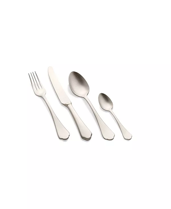 Набор включает по 4 предмета: столовая вилка, столовый нож, десертная ложка, десертная вилка, кофейная ложка