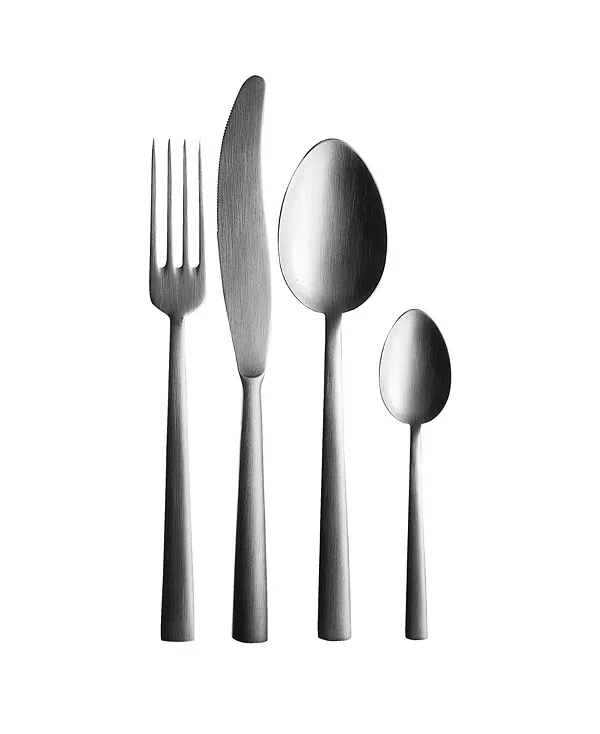 Набор включает по 4 предмета: столовая вилка, столовый нож, десертная ложка, десертная вилка, кофейная ложка