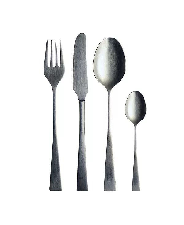 В набор входит по 4 предмета: столовая вилка, столовый нож, десертная ложка, десертная вилка, кофейная ложка