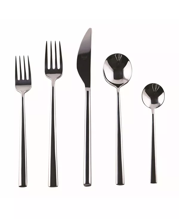 В комплект входит: 1 столовая вилка, 1 столовый нож, 1 десертная ложка, 1 десертная вилка, 1 американская кофейная ложка
