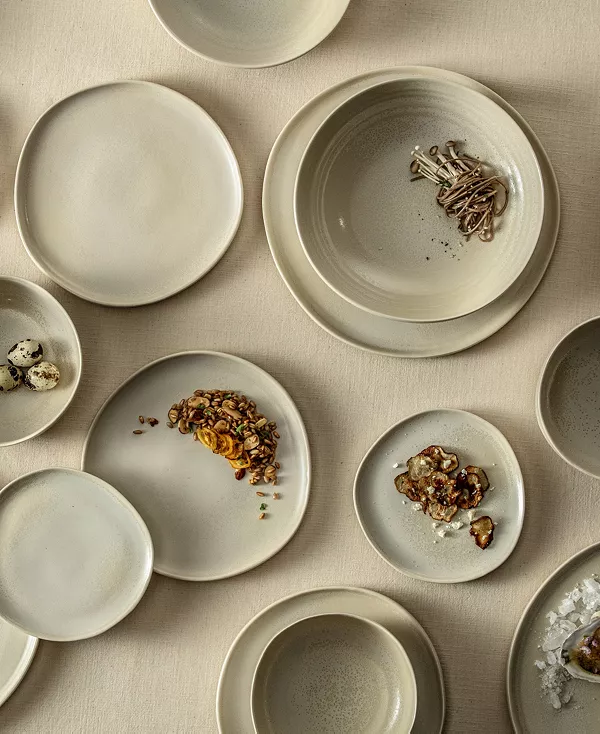 Эта сдержанная коллекция состоит из восьми минималистичных геометрических фигур с матовой поверхностью, переплетающейся с кристаллической глянцевой глазурью.