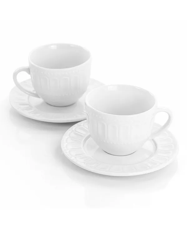 Добавьте нотку элегантности к утреннему кофе или послеобеденному чаю с помощью набора кружек и блюдец Elama Charlotte. Благодаря рельефному узору в виде арки и точек этот набор выглядит просто, но стильно.