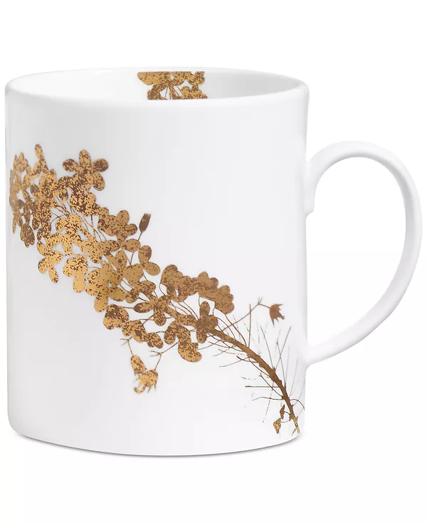 Элегантный силуэт кружки Vera Wang Wedgwood Jardin мерцает золотыми и бронзовыми цветочными мотивами, вдохновленными коллекцией произведений искусства дизайнера.