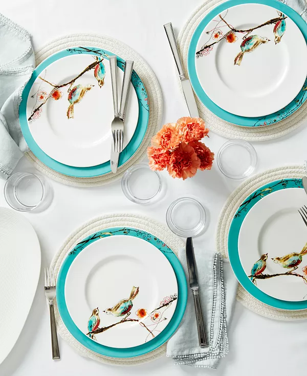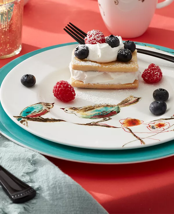 Семья и гости оценят очаровательный дизайн этого набора из четырёх салатных тарелок Chirp от Lenox, вдохновлённый акварелью. Изготовленные из прочного белого фарфора, они служат фоном для изящной картины с цветущими ветвями и птицами.