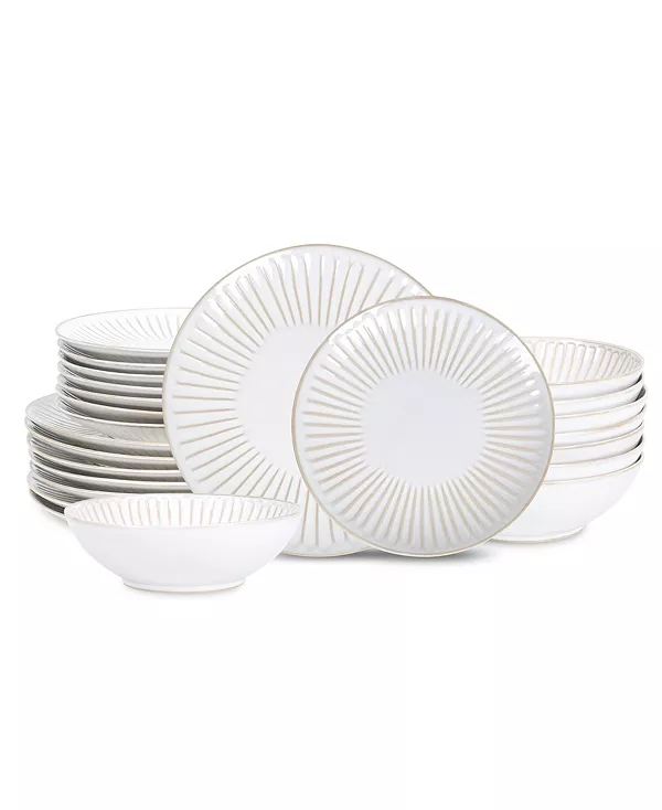 Сервиз на 8 персон: наш круглый набор посуды из 24 предметов Stone Lain Linea из керамогранита. Включает восемь больших круглых обеденных тарелок диаметром 10,5 дюйма, восемь круглых салатных тарелок диаметром 8,2 дюйма и восемь глубоких круглых 7 дюймов (7 см) мисок по 25,9 унции (7 дюймов).