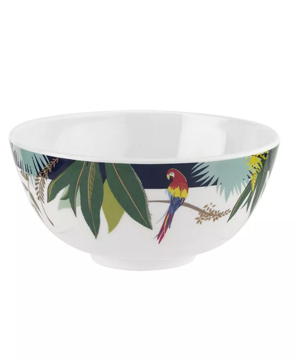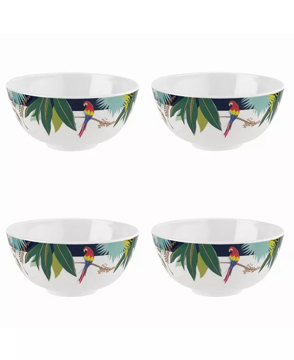 Этот набор из 4 мисок из меламина без бисфенола А от Sara Miller London Portmeirion украшен разноцветными попугаями и красивым золотистым декором на белом фоне с тёмно-синей окантовкой. Эти миски идеально подходят для обедов в помещении и на открытом воздухе, поскольку их можно мыть в посудомоечной машине и они ударопрочные.