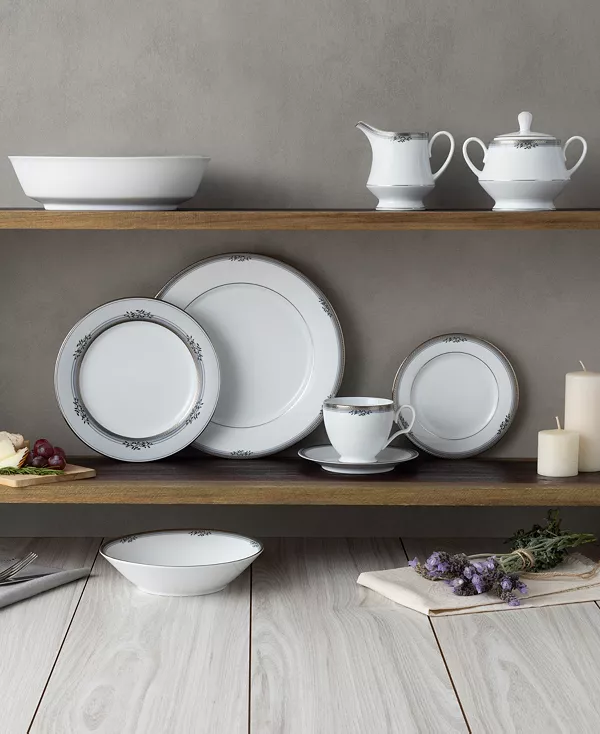 Laurelvale – это очаровательный и элегантный узор на белом фарфоре. Изделия Laurelvale сочетают в себе деконструированный греческий узор с сплошными полосами серых оттенков с узором из листьев и ветвей. Кроме того, изделия украшены рельефными эмалевыми точками.