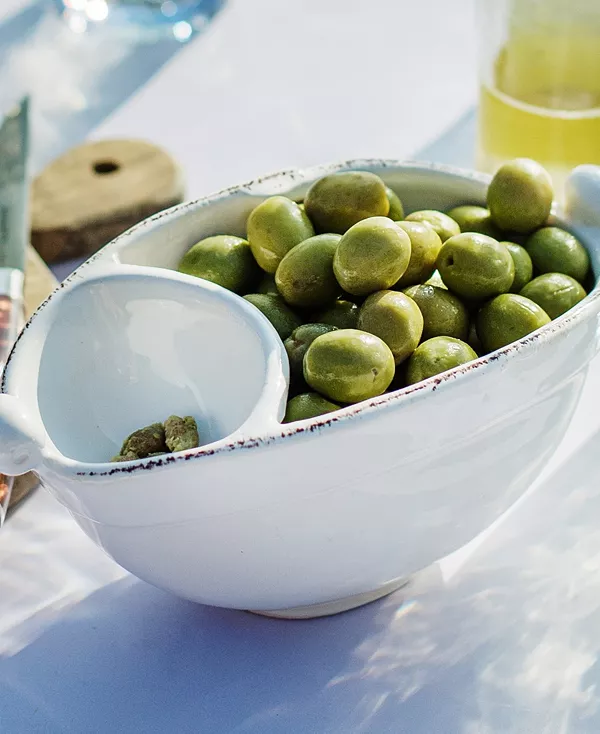 В основе двухсекционной белой чаши для оливок Lastra White лежат четкие линии и изысканный стиль. Она создана по образцу круглой деревянной плиты, которая веками использовалась для изготовления внешних форм для круглых головок сыра по всей Италии. Эта чаша станет элегантным подарком хозяйке или приятным сюрпризом. Упакована в фирменную подарочную коробку.