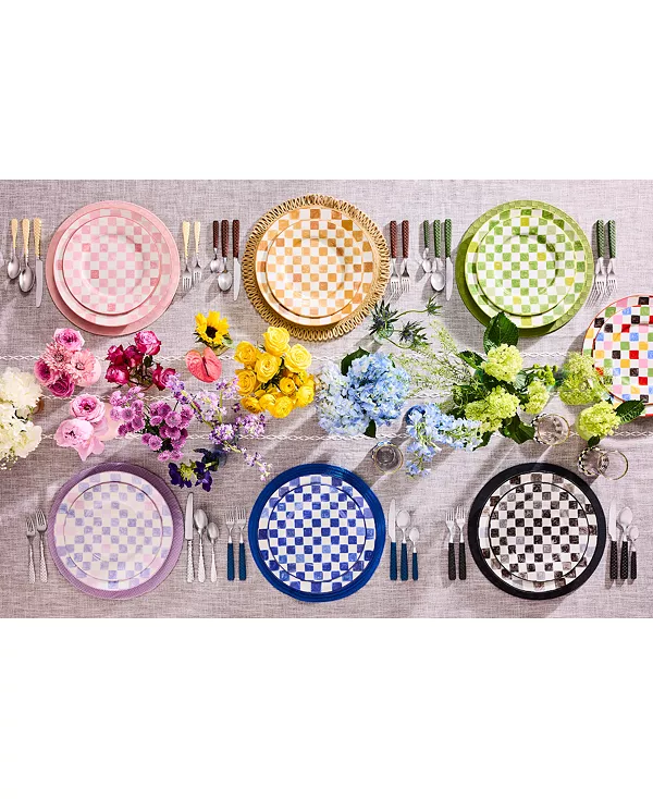 Мягкие медовые тона дополняют культовый узор «Клетки» Mackenzie-Childs, придавая новый облик этой универсальной керамической тарелке.