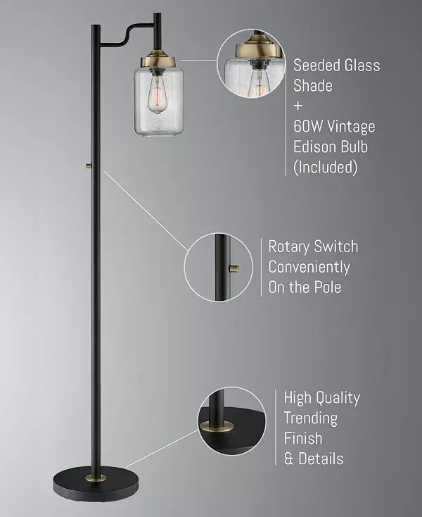 Этот двухцветный напольный светильник с черно-латунной отделкой прекрасно сочетается с абажуром из серебренного стекла и лампой Эдисона в винтажном стиле. Этот предмет, несомненно, станет темой для разговора в вашей гостиной.