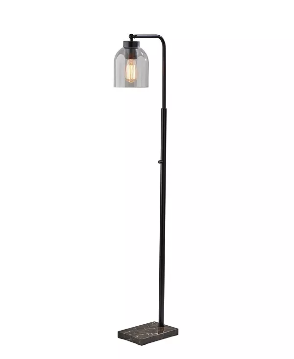 Украсьте свое пространство с помощью напольной лампы Bristol высотой 55 дюймов в стиле модерн середины века. Прямоугольное основание из коричневого мрамора размером 9,5 x 6,4 дюйма стильное и прочное, а тонкая ножка и патрон отделаны металлом.