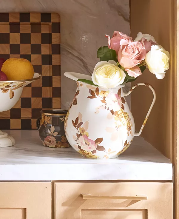 Вернитесь к изящной элегантности прошлых лет с этим кувшином от MacKenzie-Childs. Он входит в коллекцию Wild Rose и украшен вручную цветочным мотивом в винтажном стиле, который стильно смотрится как на сервировке, так и в качестве основы для изысканной цветочной композиции.