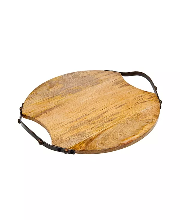 Поднос с круглой деревянной ручкой диаметром 13 дюймов и бортиком из нержавеющей стали. Отлично подходит для сервировки как в помещении, так и на открытом воздухе.