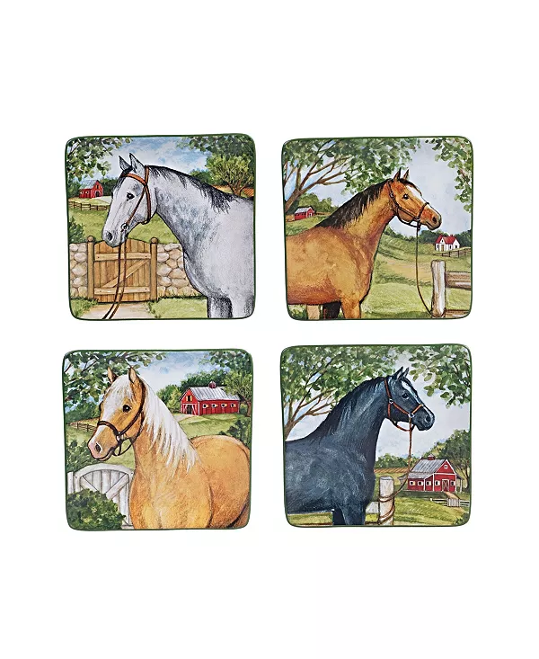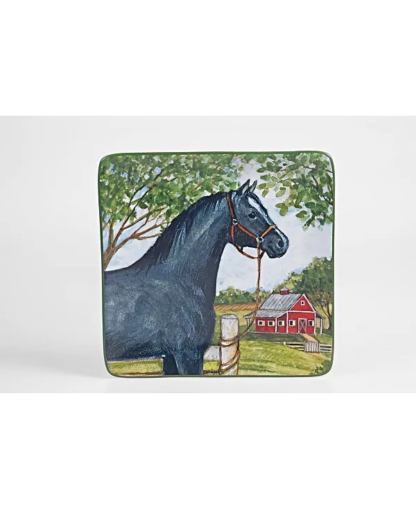 Прекрасные лошади, изображённые на каждом предмете керамической посуды и сервировочных принадлежностей «Clover Farm» от Certified International, – это работы Сьюзан Уингет. Её любовь к лошадям прослеживается в каждом изображении, а красочная объёмная банка для печенья в виде конюшни добавляет ещё больше веселья.