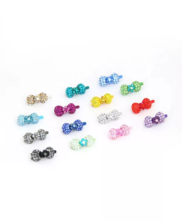 Миниатюрная заколка в форме банта, украшенная мелкими кристаллами.