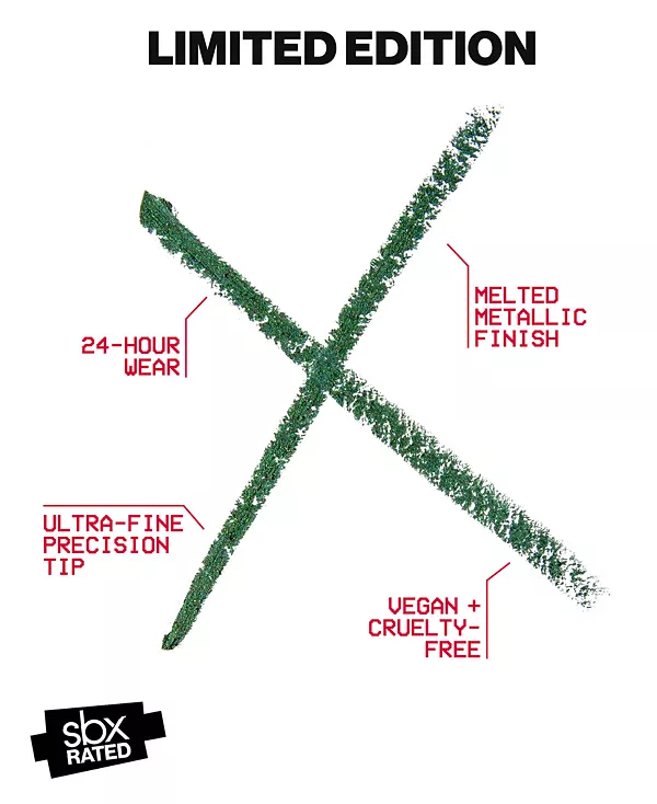 Эта лимитированная серия кремовой подводки для глаз с эффектом расплавленного металла легко наносится, быстро фиксируется и остается на месте, не размазываясь и не выцветая в течение 24 часов.