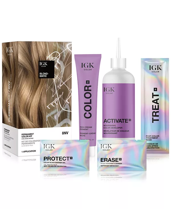 IGK делится своими фирменными оттенками прямо из салона. Профессиональные, безопасные и простые в использовании формулы усилены ингредиентами, питающими волосы, для яркого, объемного цвета.