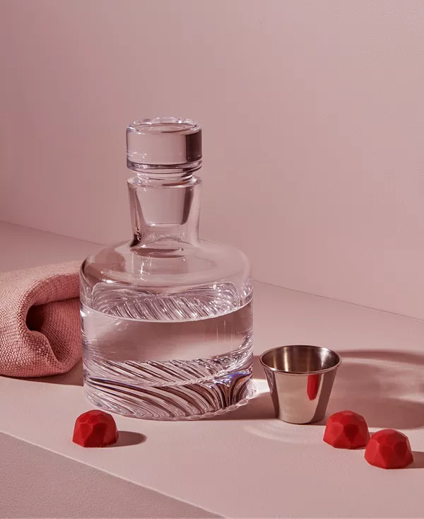 Графин Wave отличается элегантным современным дизайном, подчеркнутым скандинавским узором в виде волн на дне, что придает ему утонченную элегантность.