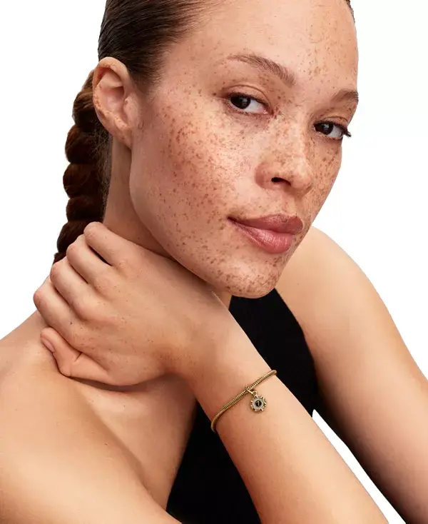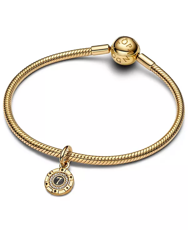 Добавьте в свою коллекцию подвеску-шарм «Счастливая фишка», изготовленную из 14-каратного золота с прозрачными кубическими цирконами и черной эмалью, с изображением фишки казино и выгравированной надписью.