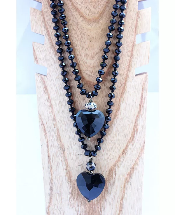 Cece Heart Black с кристальной цепочкой длиной 60 дюймов и двумя черными кристальными сердцами