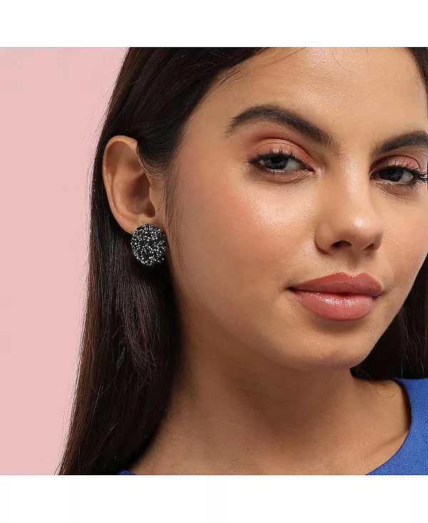 Декоративные серьги-гвоздики круглой формы Sohi, black