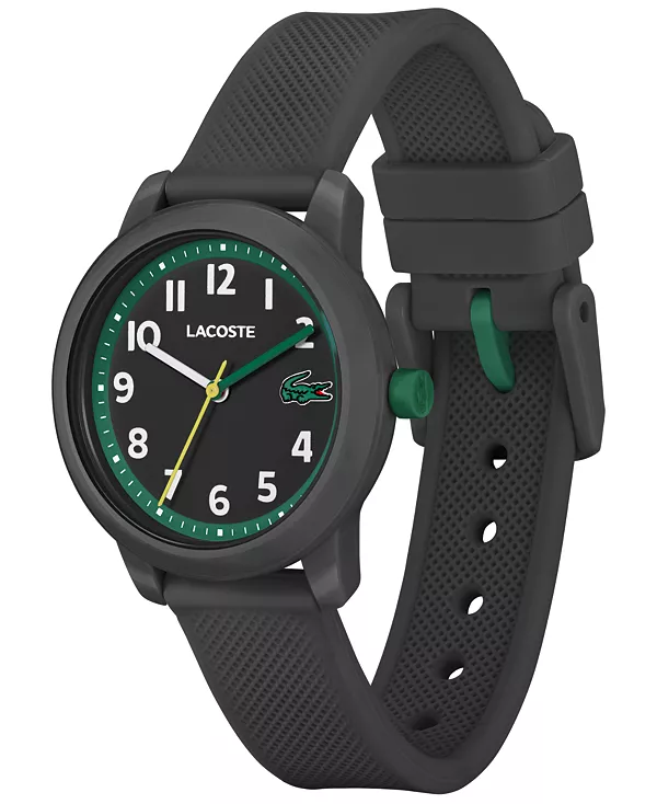 Яркие и веселые детские часы Lacoste L.12.12 нового поколения отдают дань уважения культовой рубашке-поло в игривом современном стиле. Удобный ремешок с текстурированным узором из мелкой пике по центру, а арабские цифры и стрелки трех разных цветов помогают детям научиться определять время. Модель #2030042.