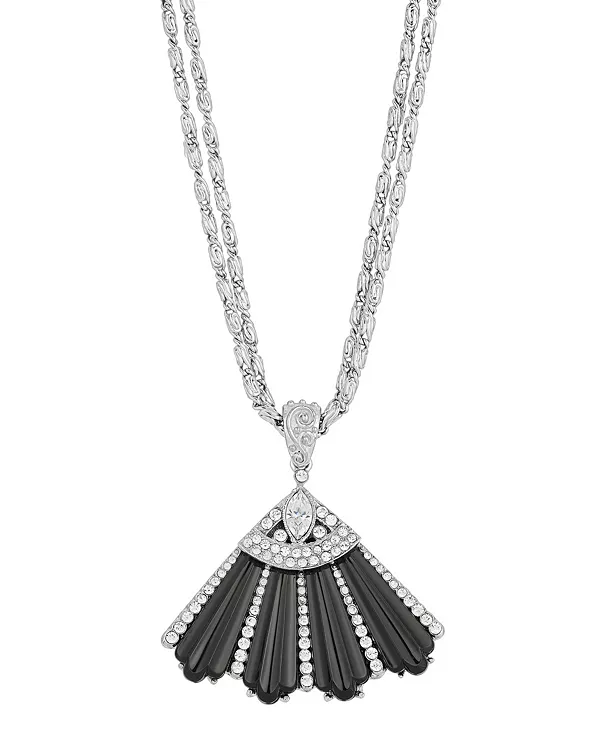Продемонстрируйте свой винтажный стиль с помощью этого великолепного ожерелья с подвеской-веером из серебристого тона и черного камня.
