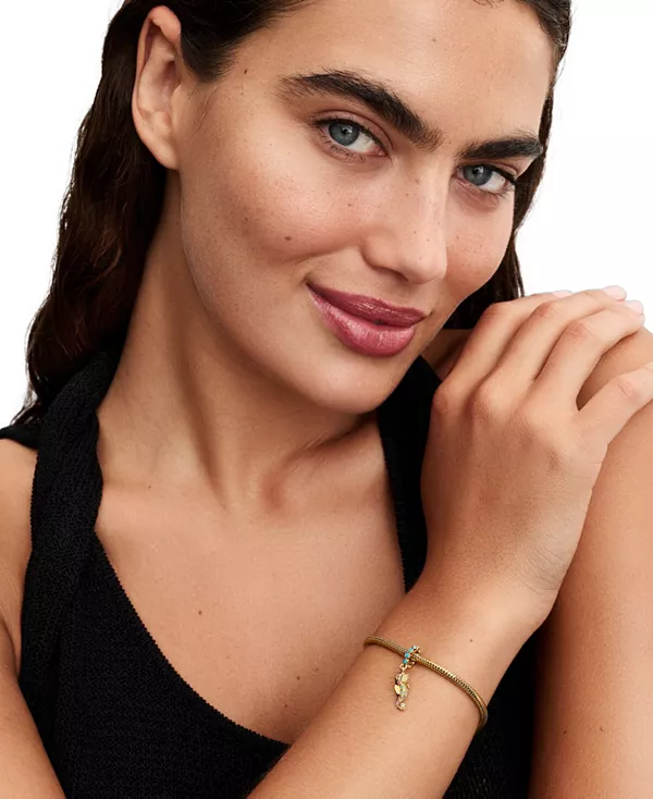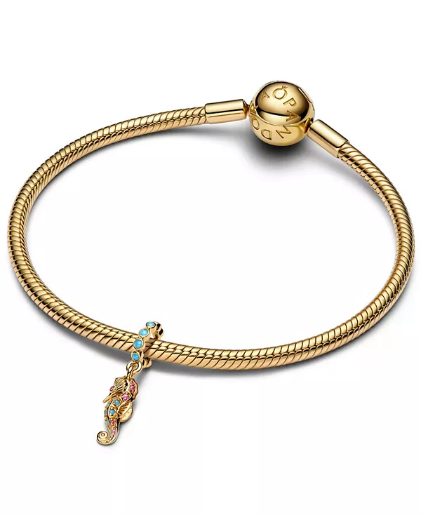 Добавьте в свою коллекцию подвеску-шарм «Морской конёк» с изображением морского конька, покрытого 14-каратным золотом. Этот шарм, украшенный прозрачными кубическими цирконами, кристаллами цвета «капри-си» и «флокс-розовый», символизирует удачу и нежную силу.