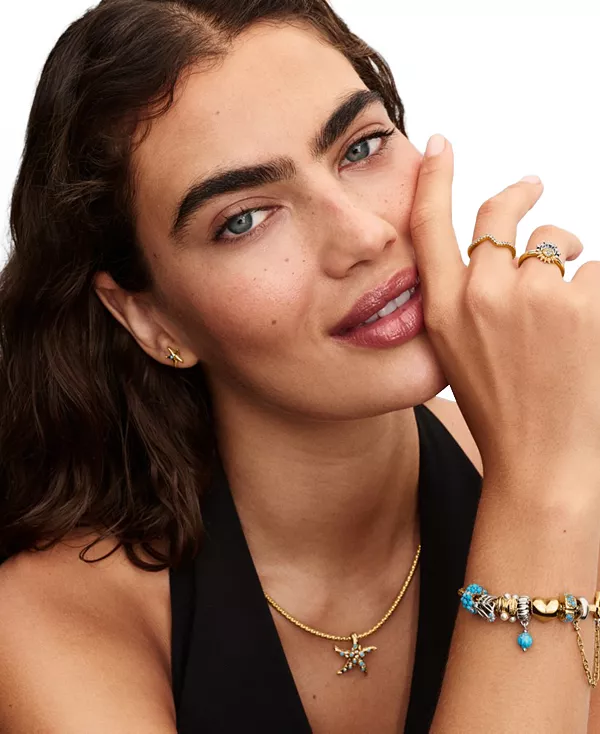 Добавьте в свою коллекцию неповторимое очарование, вдохновленное морскими звездами, с помощью серег-гвоздиков «Морская звезда» с покрытием из 14-каратного золота и кристаллами цвета «капри-голубой».