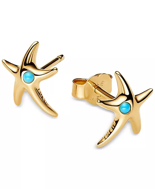 Серьги-Гвоздики в виде морских звезд Pandora, turquoise