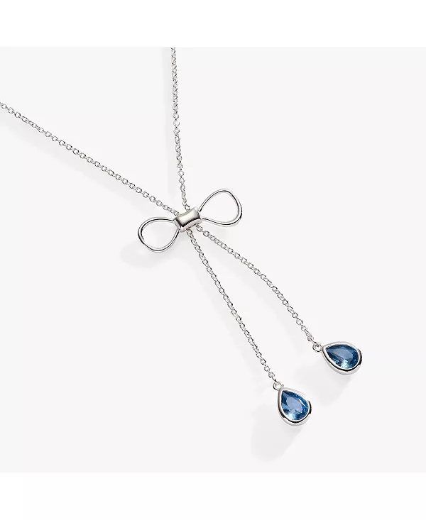Добавьте нотку изысканности в любой образ с этим потрясающим ожерельем-слайдером с бантом. Изящный дизайн скользящего банта позволяет регулировать положение банта. Украшенное сверкающими синими камнями, мерцающими на свету, это украшение прекрасно дополнит любой наряд.