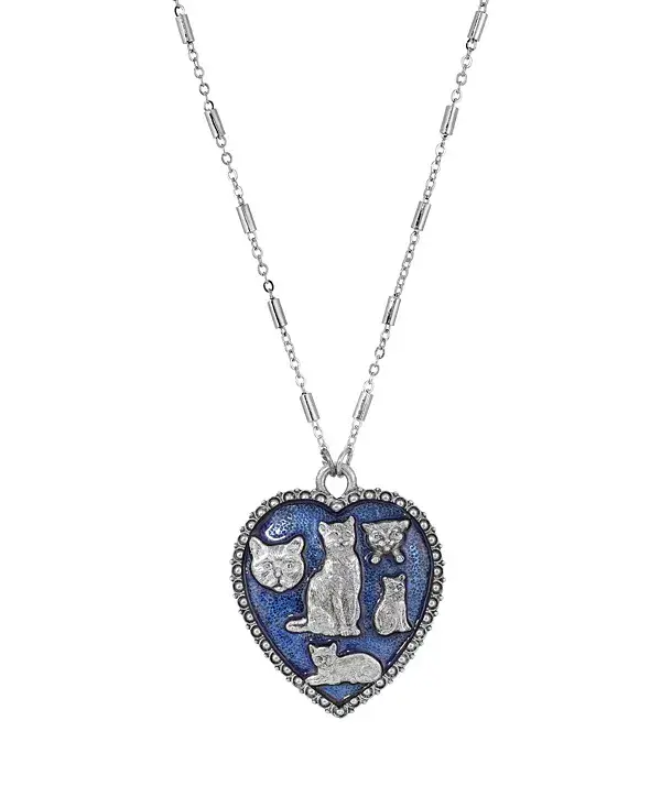 Ожерелье с синим эмалевым сердцем и кошкой 2028, blue